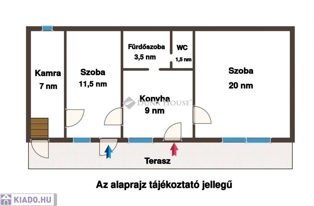 - két szoba (20 és 11.5 nm)