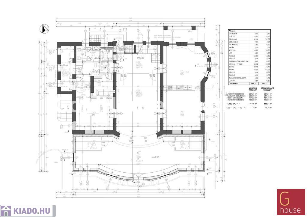 alagsor: 3 iroda, szerverszoba, nagyobb konyha, tárolók. Ezen kívül egy 40 nm-es melléképületben további 2 iroda található.