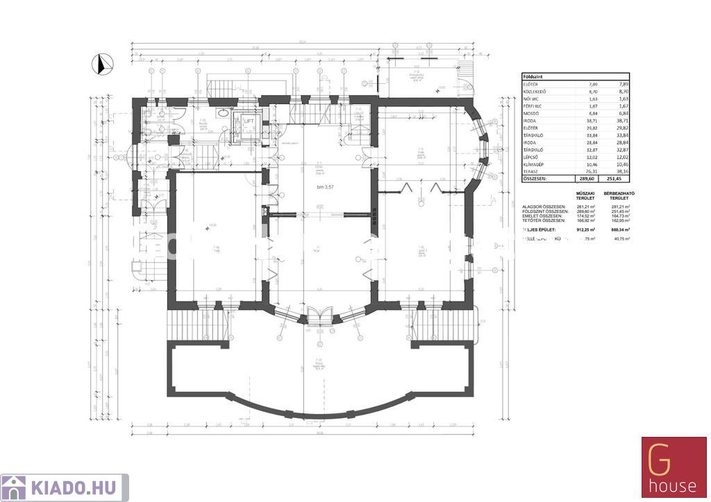2. emelet: 5 iroda, teakonyha, mosdók, erkély,