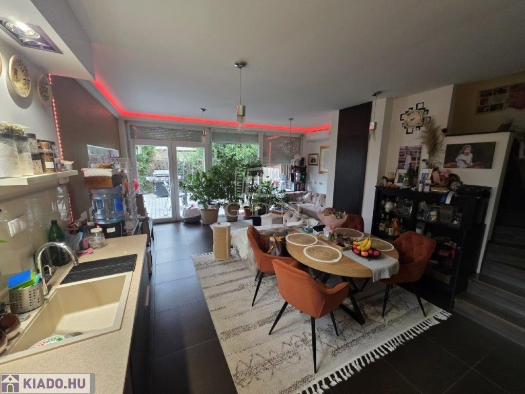 Kiadó, 3 szintes, 95 m²-es, teljesen felújított ikerházrész medencével és nagy kerttel, alacsony rezsi költséggel