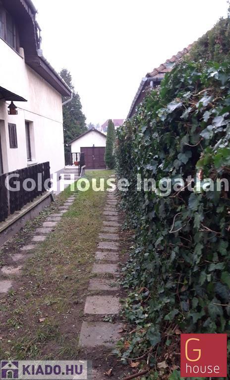 A bejárattal szemben, a kert sarkában kapott helyet a garázs. Méreténél fogva bármely személyautó, vagy kisbusz is elfér benne és a család kerékpárjainak, vagy motorjának is helyet tud adni. A kertbe több kocsival is be lehet állni, de a ház elött is lehet ingyenesen parkolni a nagy diófa alatt.