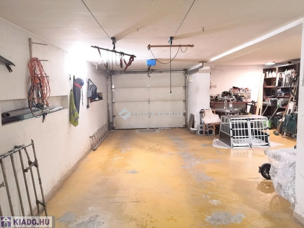 A lakószint alatt 110m2-es szuterén található, mely a lakásból is elérhető belső lépcsőházon keresztül. A szinten több tárolóhelyiség, egy kazánház, műhely-sarok, mosókonyha mellett, akár 3 autó parkolása is megoldott. A garázslehajtó a fagyos téli hónapokban fűthető, így a beállás az év minden szakában kényelmes és akadálytalan, a kapuk természetesen távirányítással nyithatóak.