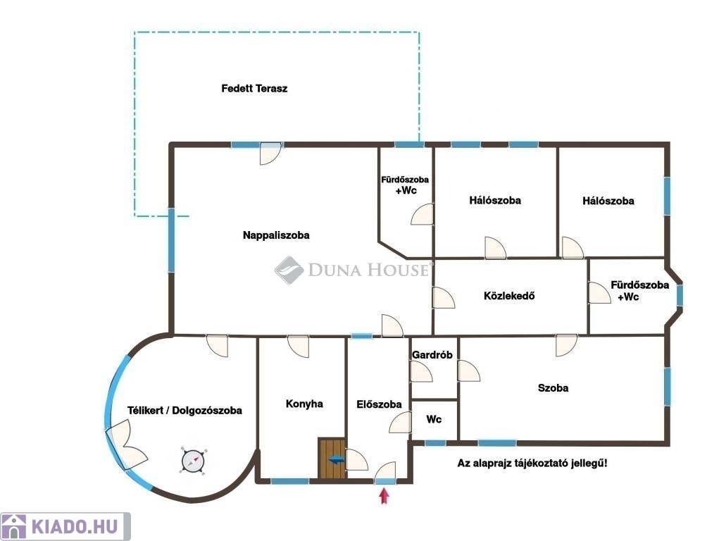 A lakótérben egy hatalmas nappaliszoba, 3 külön bejáratú hálószoba, egy hangulatos télikert (fűtött, szobaként szintén remekül használható), két fürdőszoba+wc (az egyik a szülői hálóhoz csatlakozó privát fürdőszoba), egy külön wc, egy ablakos konyha, egy előszoba, és egy a helyiségeket összekötő közlekedő helyiségek kaptak helyet. A legnagyobb hálószobához gardróbszoba is csatlakozik, továbbá a helyiség konyhapulttal is felszerelt, így akár önálló apartmanként is jól használható. A nappaliszobából hatalmas, több, mint 30m2-es fedett teraszra léphetünk ki, mely szeparált, belátástól mentes pihenést kínál a nap minden szakában.