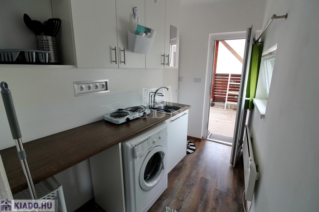 A közelben Tesco, kisebb boltok, piac, orvosi rendelő, mind megtalálható. A minigarzon egy kertes ház melléképületében található, az udvar és az autóbeálló közös, de a lakás teljesen elszeparált. A pár éve teljeskörűen felújított épület megújult kívül belül, szoba, tusoló, külön WC, és egy kis konyha kapott helyet benne. A képen látható berendezésekkel, (mosógép, hűtő, rezsó, egy személyes kinyitható ágy, komód, szekrény, könyves polc) hosszútávra, de minimum egy évre kiadó. A fűtésről modern elektromos panelek gondoskodnak, minden fogyasztás külön mérő óra alapján fizetendő. Közös költség nincs, TV és internet használat a bérleti díjon felül fizetendő.