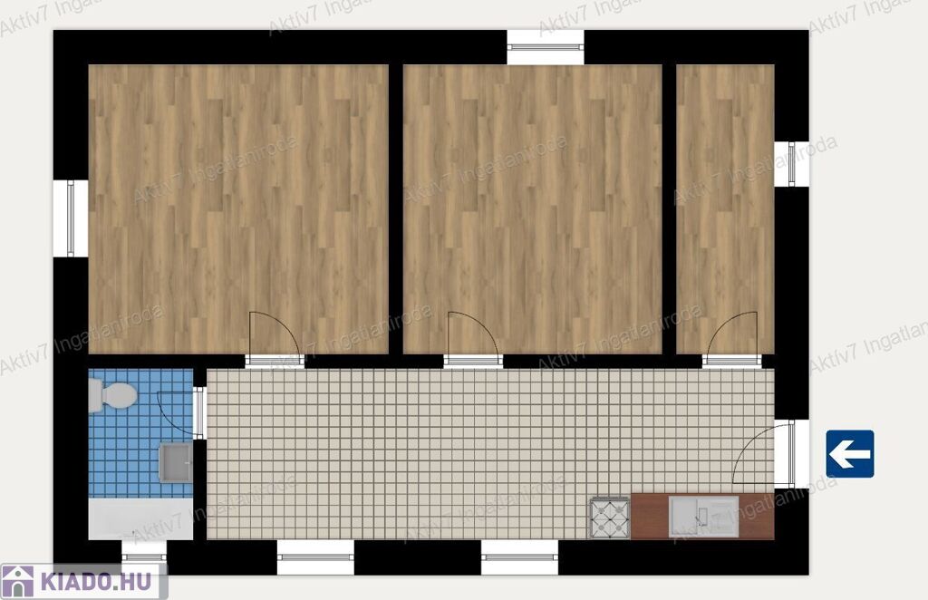 - Konyha – étkező, 2 hálószoba, gardrób, fürdő