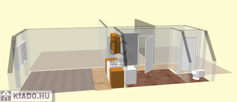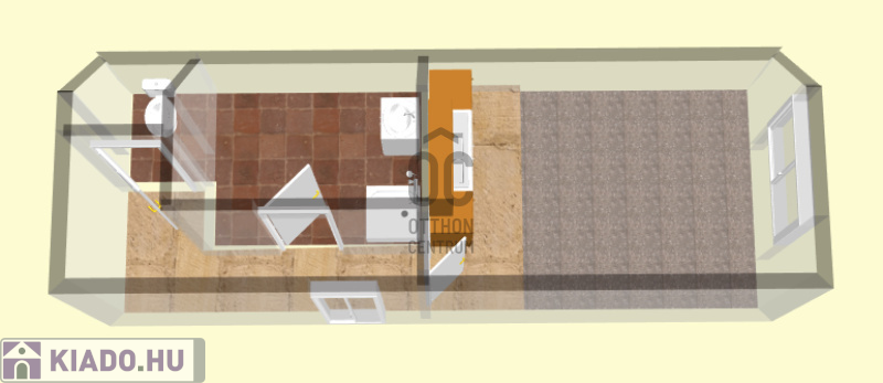 A lakásban szoba-konyha egyben található, a főzés infra főzőlappal megoldott, hűtőszekrény rendelkezésre áll.
