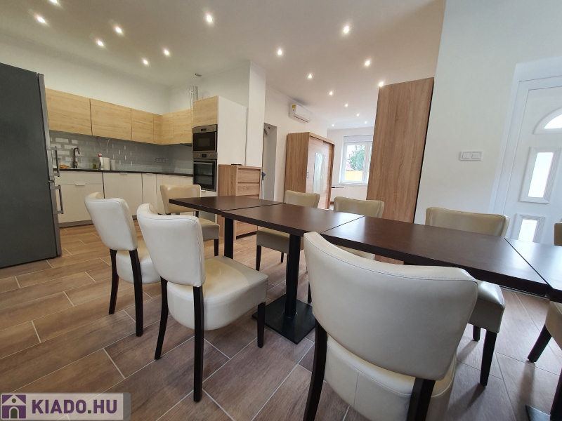 Kiadó Vecsés , kertvárosi részén 2018-ban teljesen felújított, 200 nm-es kétszintes családi ház, önálló kertrésszel. Nappali+ 5 szobás, szobánként saját fürdőszobával.Nagy közös nappali, konyha ebédlővel, rendezett kerttel. A kertben van egy melléképület, ahol egy raktár és egy mosókonyha van kialakítva. Gépesített, jól felszerelt konyha, minden szoba légkondicionált, bútorozott, tv-vel felszerelt, fűtése gáz-cirkóval megoldott. Kertben fedett 2 autós beálló. A kerten belül még 2 autónak van parkolási lehetőség.