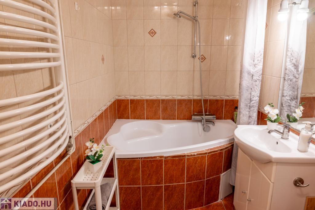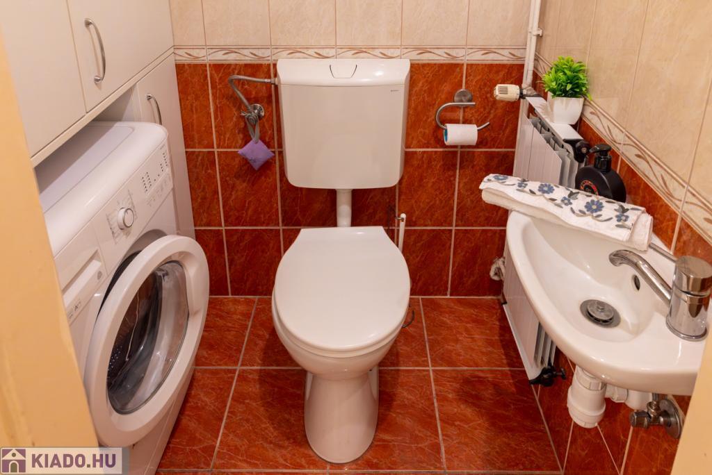 Kádas fürdőszoba WC-vel, plusz külön vendég WC.
