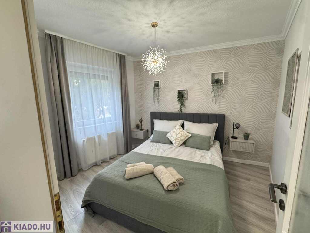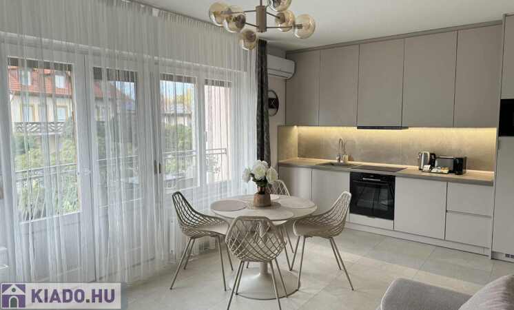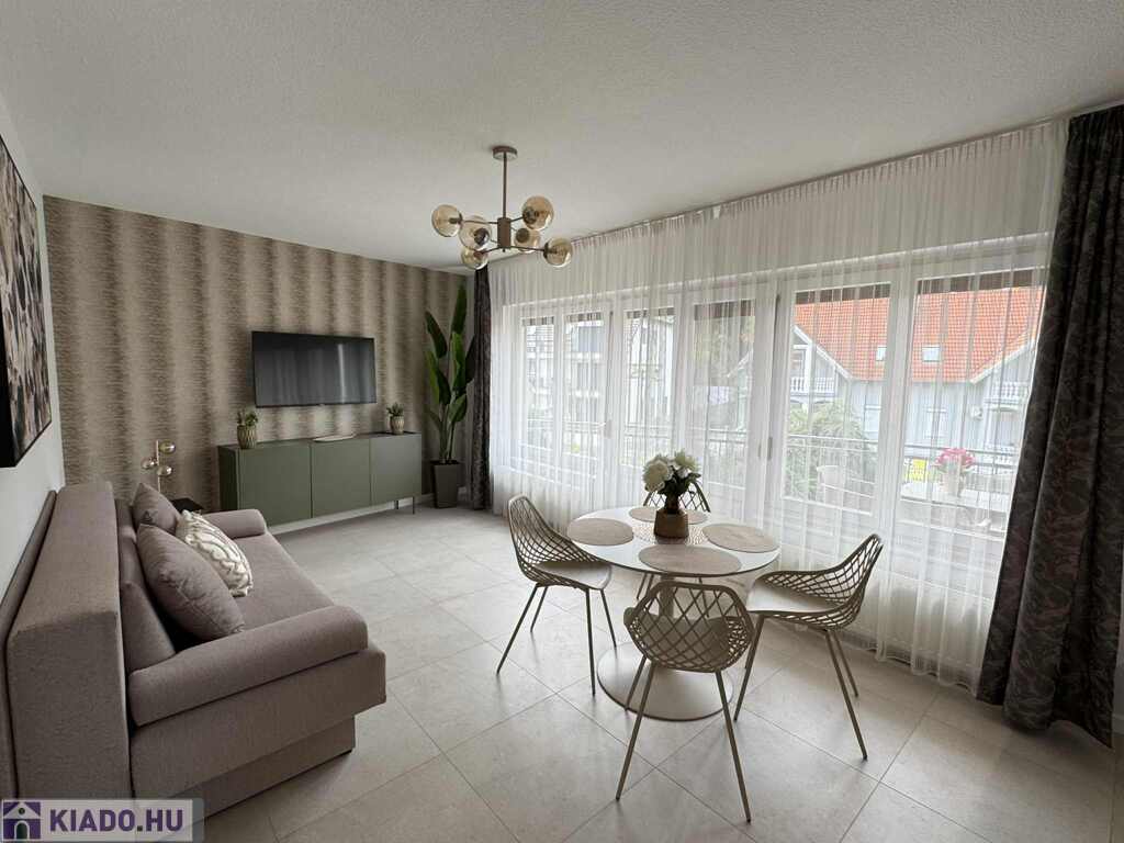 2026.06.15.-ig!!! Balatonlelle központjában, a Balaton parttól 100 m-re, gyönyörű zöldövezeti környezetben rendezett társasház 1. emeletén lévő 51 m2-es felújított iényes lakás kiadó. A lakásban egy szoba + amerikai konyhás nappali amelyből 10 m2-es terasz nyílik, előszoba, fürdőszoba-zuhanyzó-wc helyiségek találhatóak, a fűtése és a melegvíz ellátása kombi gázkazánnal megoldott, továbbá légkondícionáló is van felszerelve, valamint tartozik hozzá az épület zárt udvarában 1 szgk. részére beállóhely is. A lakás teljesen felszerelt, wifi és mindig tv van! A lakást a tulajdonosa legfeljebb 2 felnőtt részére kívánja kiadni, a dohányzás és a kisállat tartása nem engedélyezett! Bérleti díj: 140.000.- Ft/hó + rezsi + 2 havi kaució