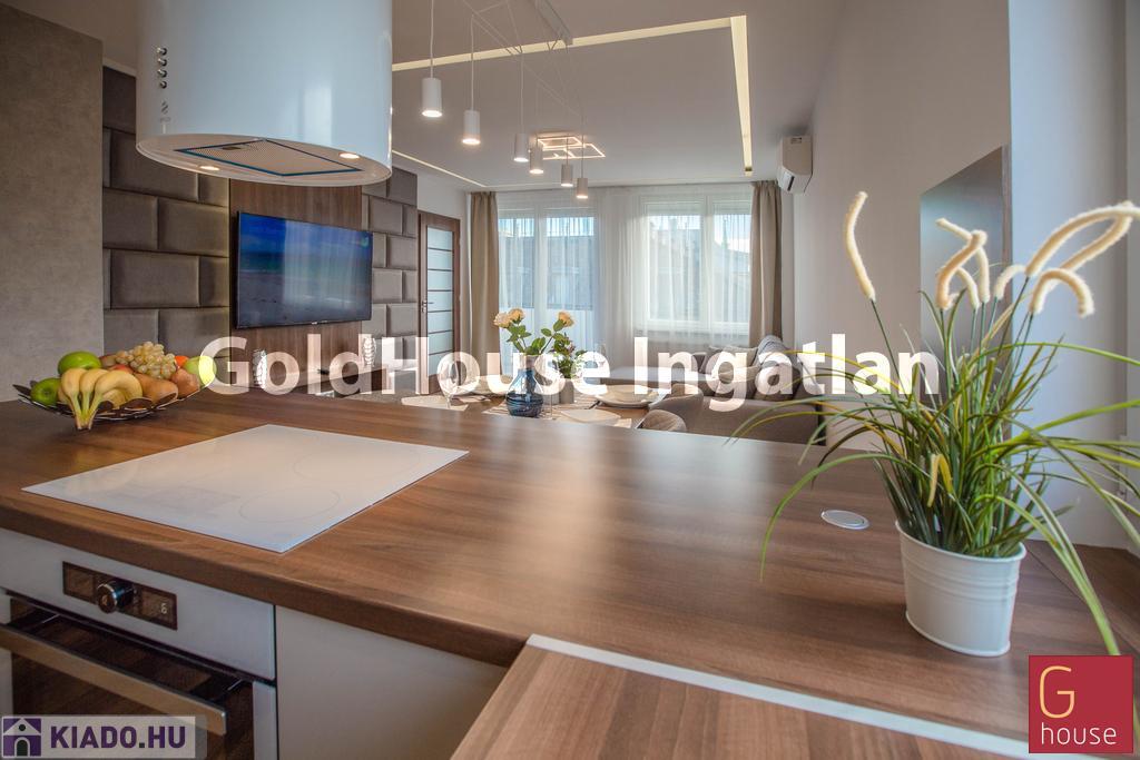 A lakás berendezett,gépesített okos otthon, várja első bérlőjét.