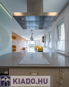 Modern, gépesített konyha: mosogatógép, hűtő, mélyhűtő, sütő, mikró, indukciós főzőlap