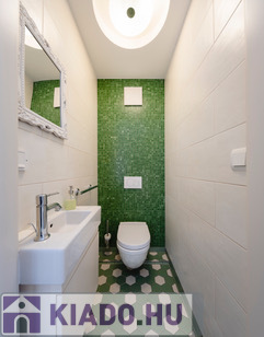 Második fürdőszoba káddal, mosógéppel és beépített bútorokkal