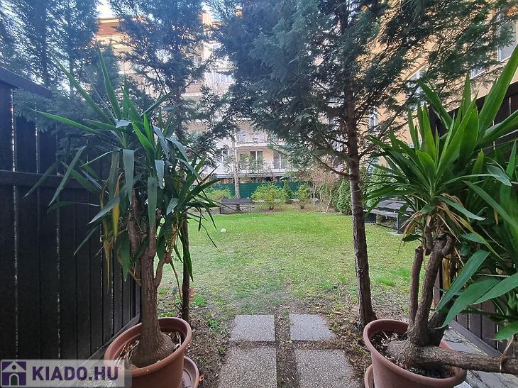 A házhoz zöld, nyugodt közös kert tartozik – ideális pihenéshez egy hosszú nap után