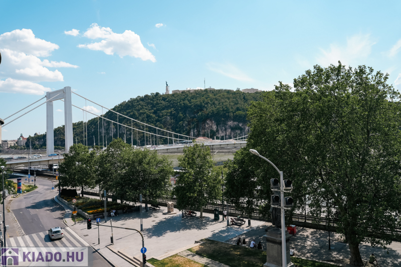 A belváros szivében, az Erzsébet híd pesti hídfőjétől néhány méterre, kiváló közlekedéssel, mégis távol a dugók zajától, zöld környezetben a Duna partján, egy igényesen felújított, 3. emeleti brutto 159 m2-es, 4 szobás, 2 fürdőszobás igazi polgári lakás, magas belmagassággal, szaunával és két erkéllyel keresi új lakóit!