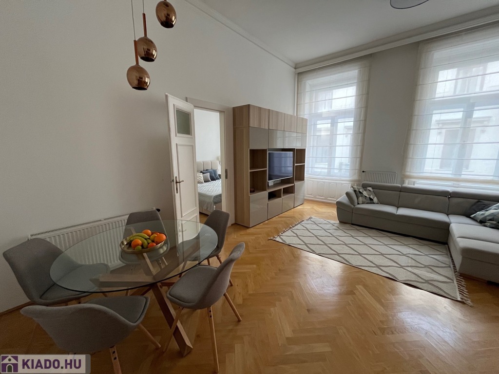 Egy 100 m²-es, gyönyörűen felújított lakásról van szó, egy elegáns, műemlék jellegű ház 2. emeletén (lifttel).