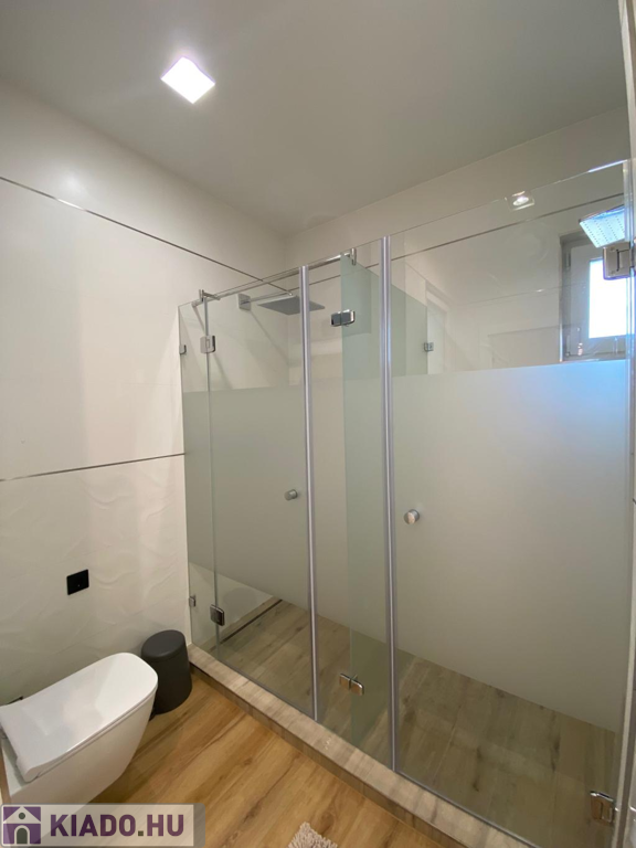 A fürdőszoba elegáns burkolatokkal, két különálló zuhanyzóval és WC-vel rendelkezik, így akár két személy is kényelmesen, egymástól függetlenül készülődhet reggelente. Az ablakos kialakításnak köszönhetően jól szellőztethető.
