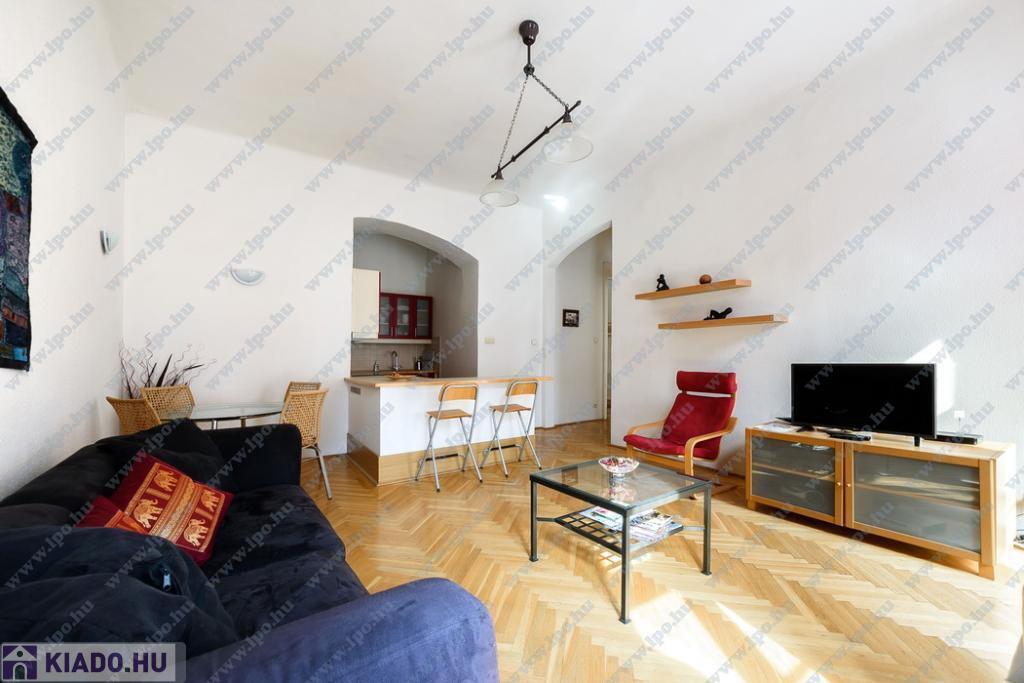 Kiadó 16 nm-es SZOBA Budapest, VI. kerület Hajós utcában minimum 6 hónapra egy szépen felújított 65 m2-es, amerikai konyhás nappalis + 2 hálószobás, utcai nézetű, 2. emeleti lakás.