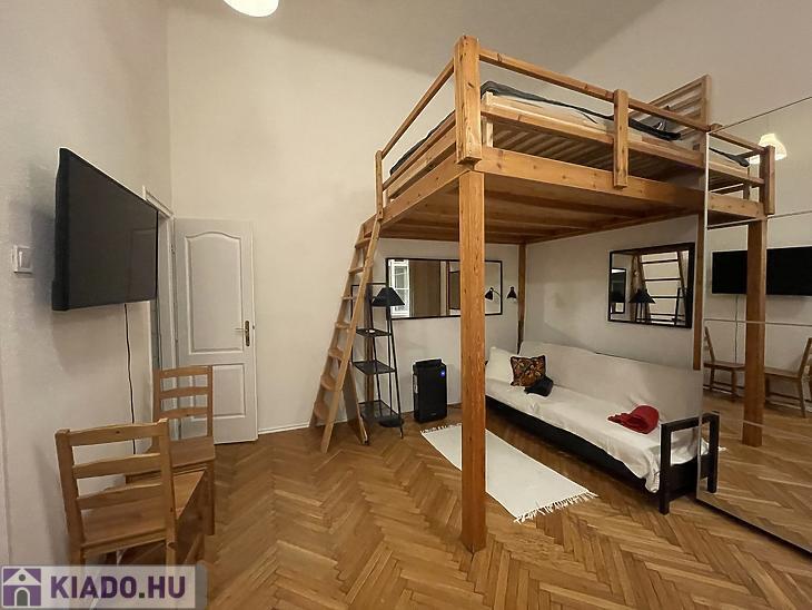 A Nyugati tér közvetlen közelében, a VI. kerület szívében kiadó egy földszinti, frissen felújított, galériás garzonlakás.