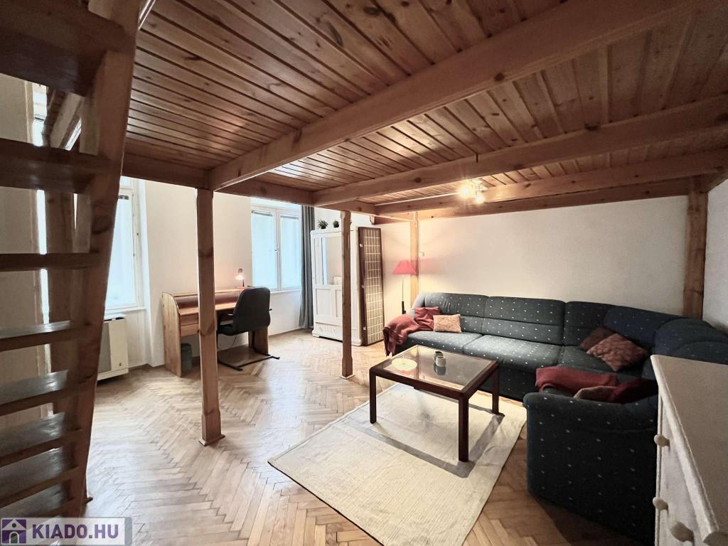 VI.kerület-ben NYUGATI közelében, kulturált környéken, az Eötvös utcában, PATINÁS, JÓL KARBANTARTOTT épületben II. emeleti 44 m2-es galériás jó hangulatú kislakás kiadó november 12-től bútorozottan, gépesítve!