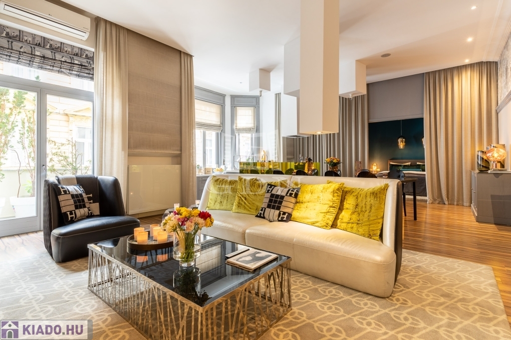 VI. kerületben, a Szív utcában kiadó egy 132 m2-es, 4 szobás, CSENDES, VILÁGOS, FELÚJÍTOTT luxus lakás.