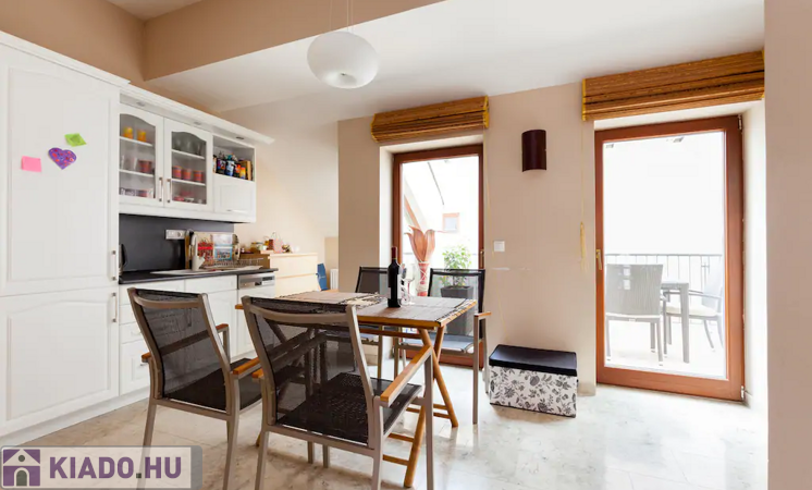 bútorozott, gépesített konyhával
