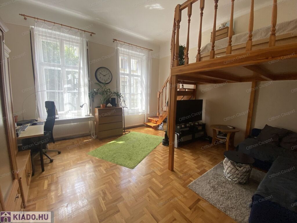 Kiadó a 7.kerületben, a Huszár utcában egy 1.emeleti, 40 négyzetméteres, galériás lakás. Részben gépesített és részben bútorozott. A gépek közül a hűtőszekrény hiányzik, a bútorok közül a nappaliba kell egy ülőgarnitúra, dohányzóasztal, TV állvány, illetve az ágyhoz egy matrac.