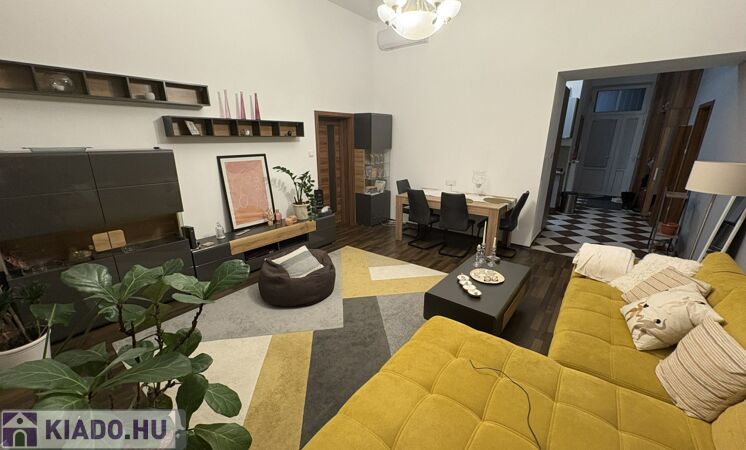 Kiadó egy 72 négyzetméteres, igényesen felújított és berendezett, nappali plusz 2 hálószobás lakás a Blahától 5 percre, az Almássy téren. Az első emeleti lakás (lift nincs) ablakai a térre néznek. Az egyik szoba galériázott.
