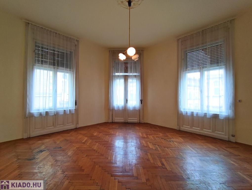 Két szoba ablakai utcára, egy a ház csendes, belső udvarára néz. Az ablakok rendenyősek.