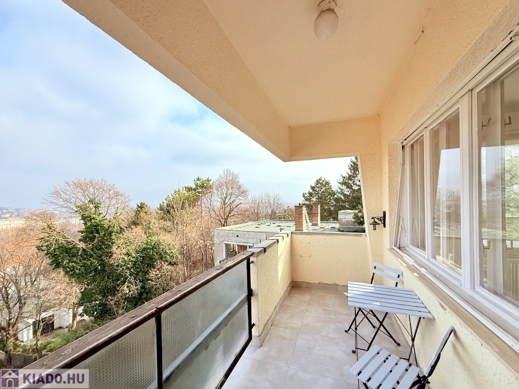 XII. KISSVÁBHEGY egyik legkedveltebb csendes mellékutcájában, a Kis-Sváb-hegy Természetvédelmi Terület és a Városmajor park között, néhány perc sétára a tömegközlekedéstől, LEGFELSŐ emeleti, 78 nm hasznos alapterületű, nappali + két hálószobás, keleti fekvésű, TELJESEN felújított, BÚTOROZOTT lakás, rózsadomb felé néző panorámás terasszal, tárolóval kiadó!