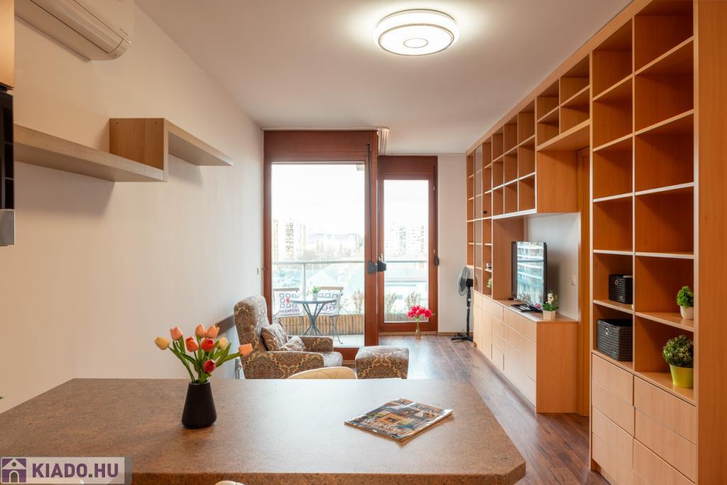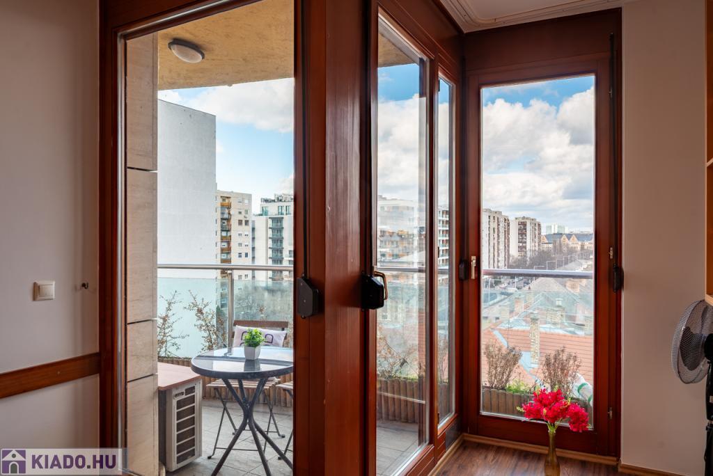 Budapest XIII.kerületében a közkedvelt Kleopátra Ház magas emeletén hosszú távra kiadó egy 45 m-es, teraszos, világos lakás, amely kellemes otthona lehet egyedülállóknak vagy pároknak is.