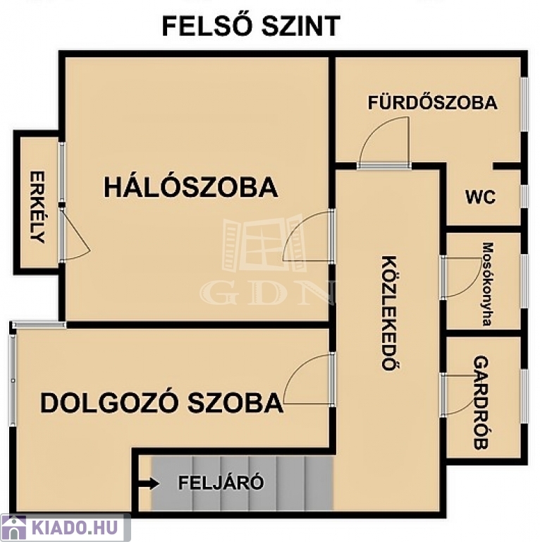A nappaliból kényelmes, egyedi fénytechnikával felszerelt lépcső vezet fel a felső szintre, ahol egy erkélyes hálószoba, egy dolgozó-, vagy vendégszoba, mosókonyha, gardróbszoba,kádas fürdőszoba és WC található.
