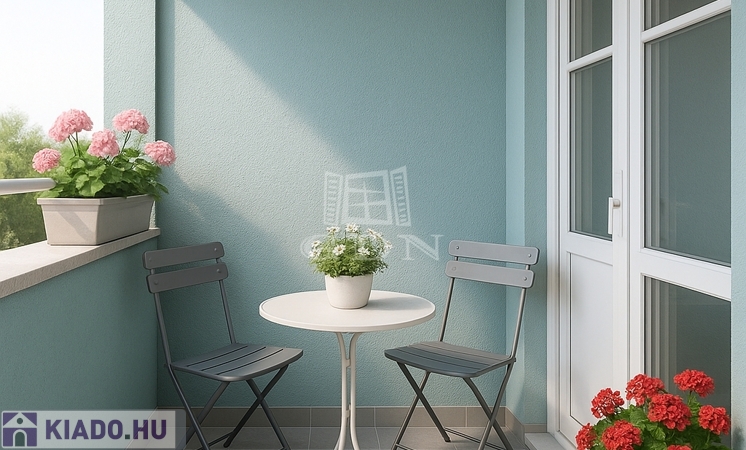 Az utcai kilátást biztosító lakáshoz tartozik egy 4 m²-es és egy 2 m²-es erkély, amely tökéletes helyszín a pihenésre.