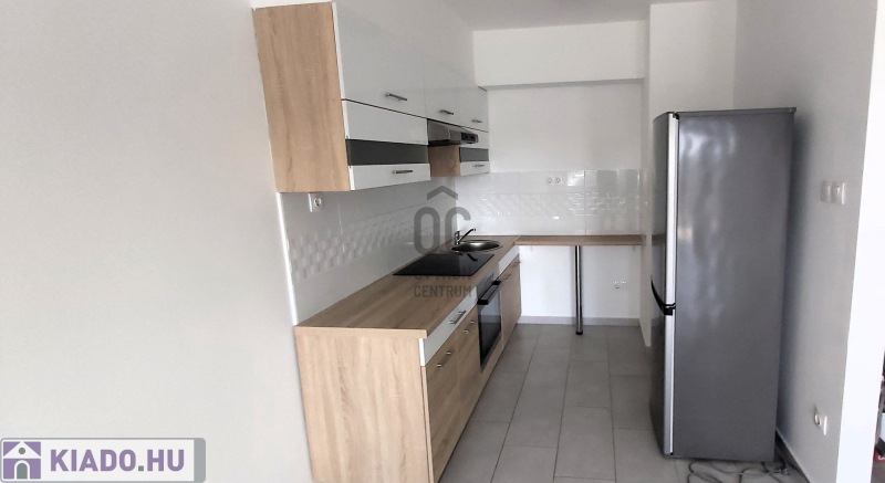 A lakásban felszerelt konyha található hűtővel, egyébként nem bútorozott.