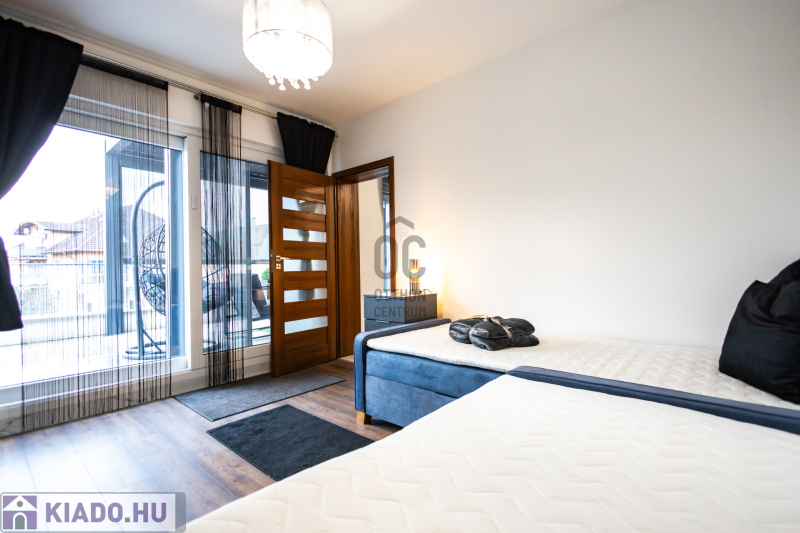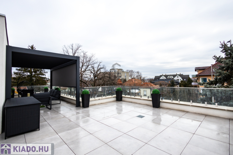 A lakás prémium minőségű anyagokkal, igényes belsőépítészeti megoldásokkal került kialakításra. Klimatizált, korszerű gépészettel felszerelt, energiahatékony, így alacsony rezsiköltséggel fenntartható. A modern konyha beépített gépekkel ellátott, a burkolatok és szaniterek magas minőséget képviselnek. Teljes bútorzattal kiadó a lakásban padlófűtés, mennyezet hűtés-fűtés található. A teraszon pergola, az ablakokon elektromos redőnyök, és elektromos zip függöny van felszerelve.A lakáshoz tartozik egy önálló,zárt garázs ,a társasház udvarán.