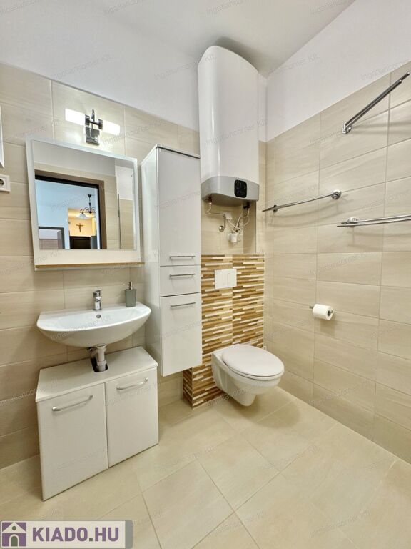 -MELEGVÍZ ELLÁTÁST: a fürdőszobában elhelyezett 100 literes modern lapos bojler biztosítja.