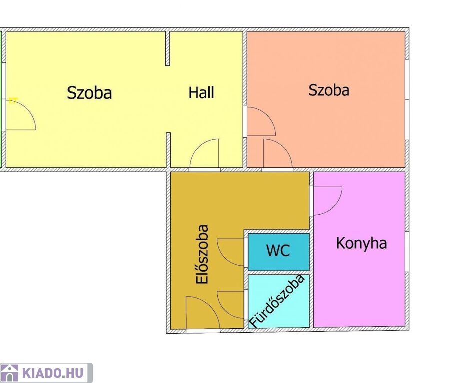 Elosztása: előszoba, fürdő, külön wc, nappali hallal, hálószoba, konyha.