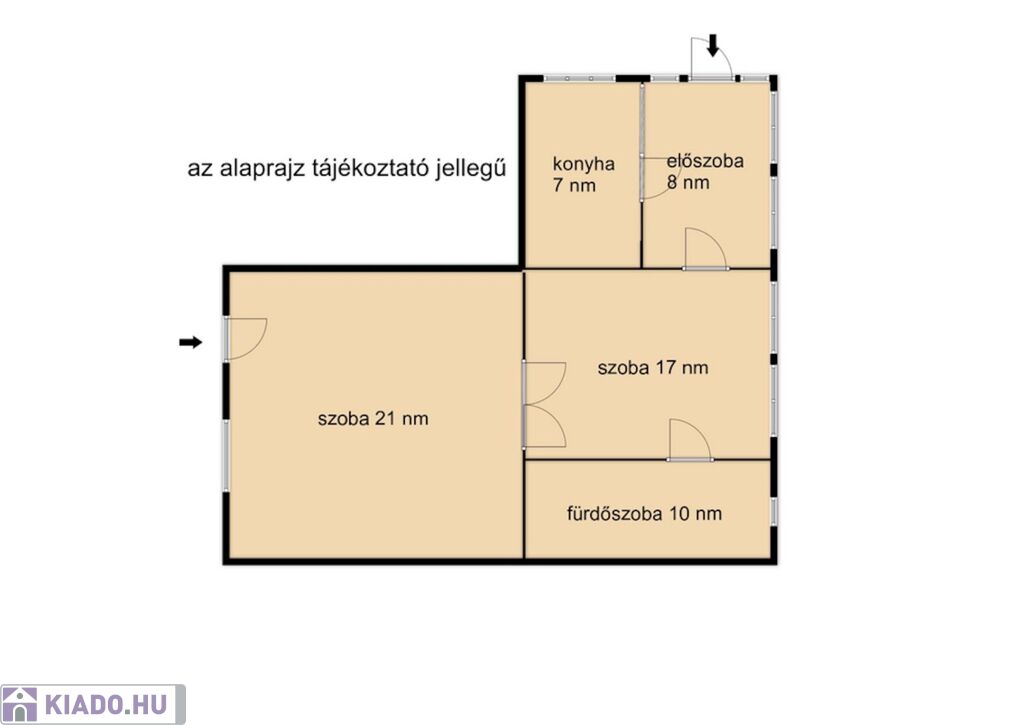 Az ingatlanban két tágas szoba, egy konyha, fürdőszoba és egy tágas előtér található. Különlegessége hogy két bejárattal rendelkezik így akár vállalkozás céljára is használható.