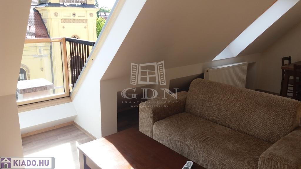 Kiadásra kínáljuk Kaposváron, a Sétáló utca szomszédságában egy tetőtéri, igényesen kialakított, két szobás, amerikai konyhás, részben bútorozott, klímával szerelt lakást.