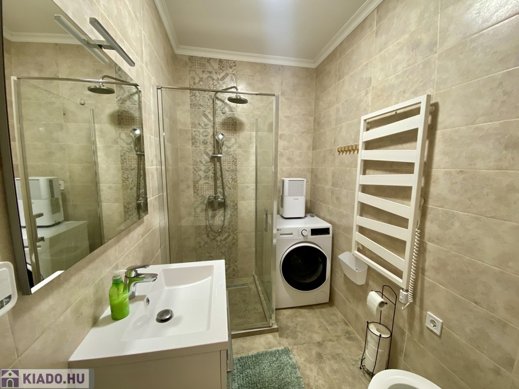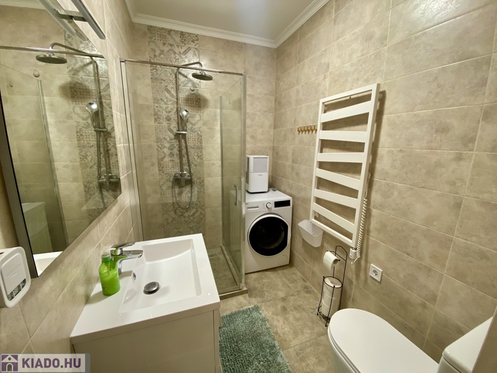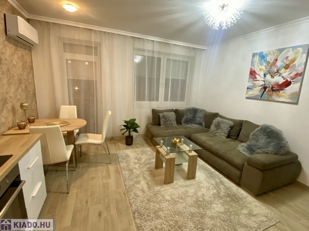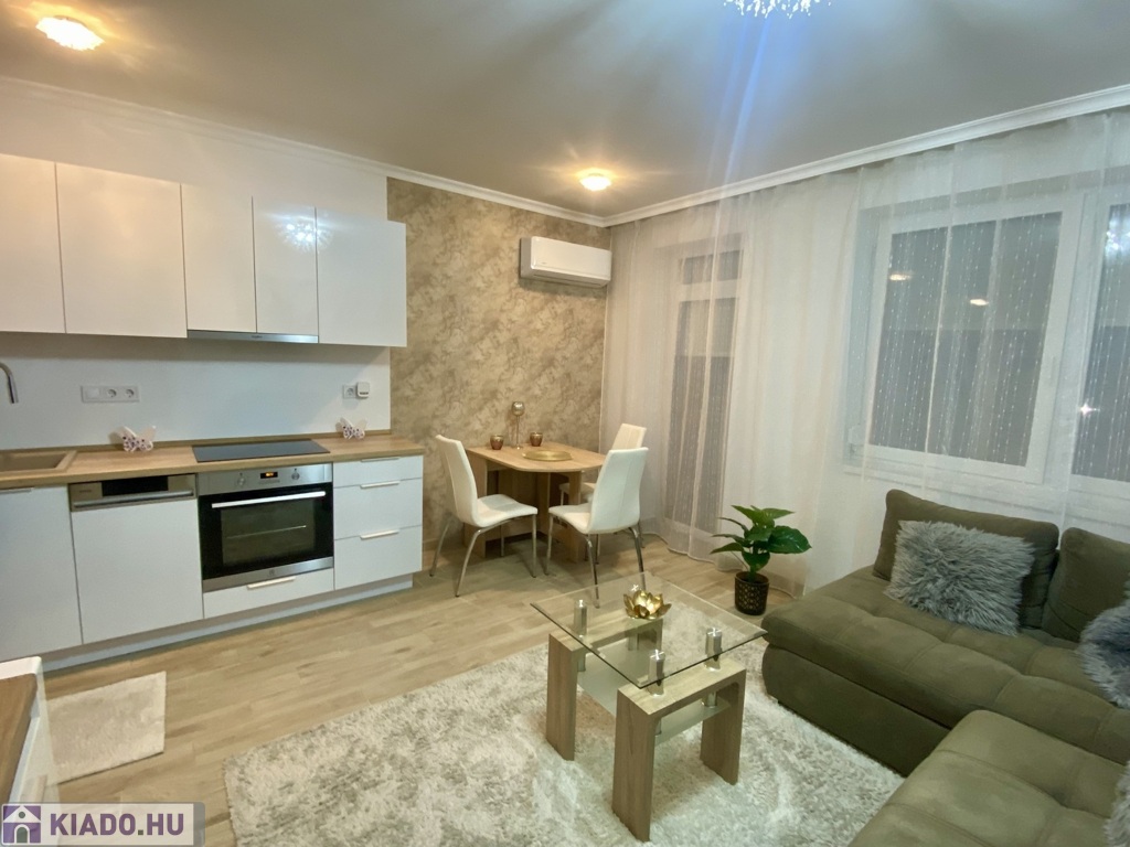 Nyíregyházán, a Belvároshoz közel, 2024-ben átadott társasházban kiadó egy 1 hálószobás + nappalis, első emeleti, klimatizált, igényesen bútorozott és teljesen gépesített lakás.