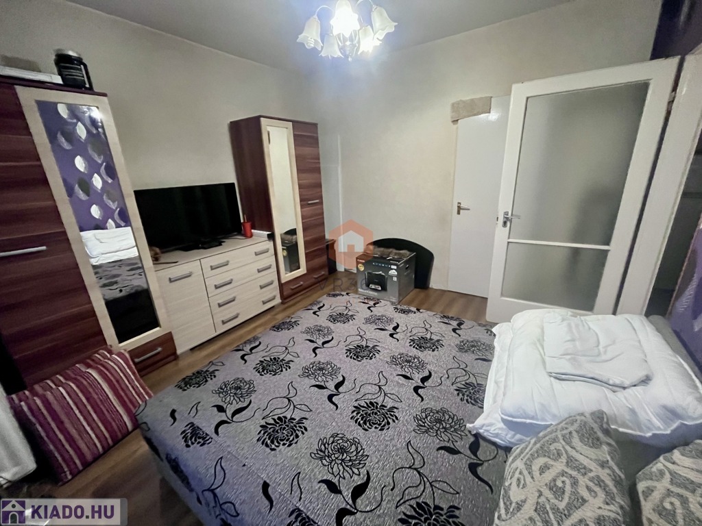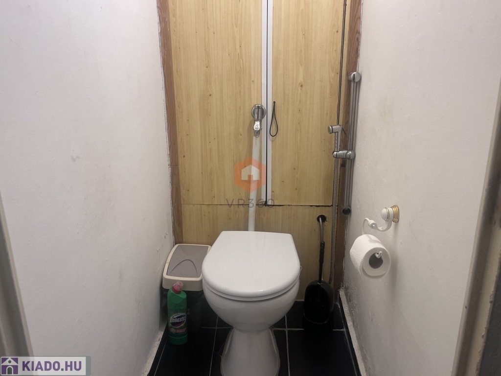 Külön helységben található a fürdő és WC. A lakás teljes berendezéssel konyhaeszközökkel van felszerelve