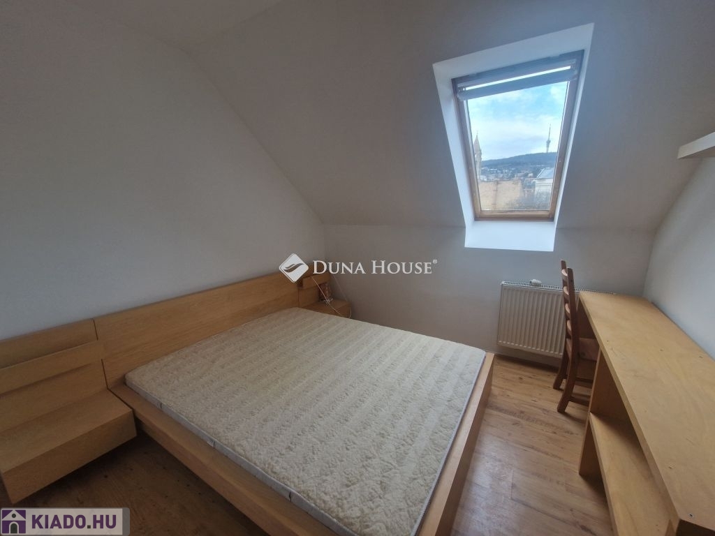 Kiadó tetőtéri lakás Pécs belvárosában, a Széchényi tértől 2 perc séta.Rendezett zárt udvaros társasház 4 emeletén , 50 nm -es,tetőtéri ,kiváló eloszlású lakás.A lakás minden helyisége külön nyílik, így ideális választás egyetemisták, illetve fiatal párok számára, akik kényelmes, jól megközelíthető otthont keresnek.a belváros szívében .50nm1 szoba+ amerikai konyhás nappalifürdőszoba wc-vel, mosógéppelcirkó fütéskerámia burkolat a konyhában, fürdőben és az előszobábanteljesen bútorozott és gépesítettvilágos, csendes, tetőtéri lakászárt udvaros társasházkisméretű háziállat előzetes egyeztetéssel megengedettdohányzás nem megengedettazonnal költözhetőMegtekintéssel és további információval kapcsolatban várom megtisztelő hívását a hét bármely napján.