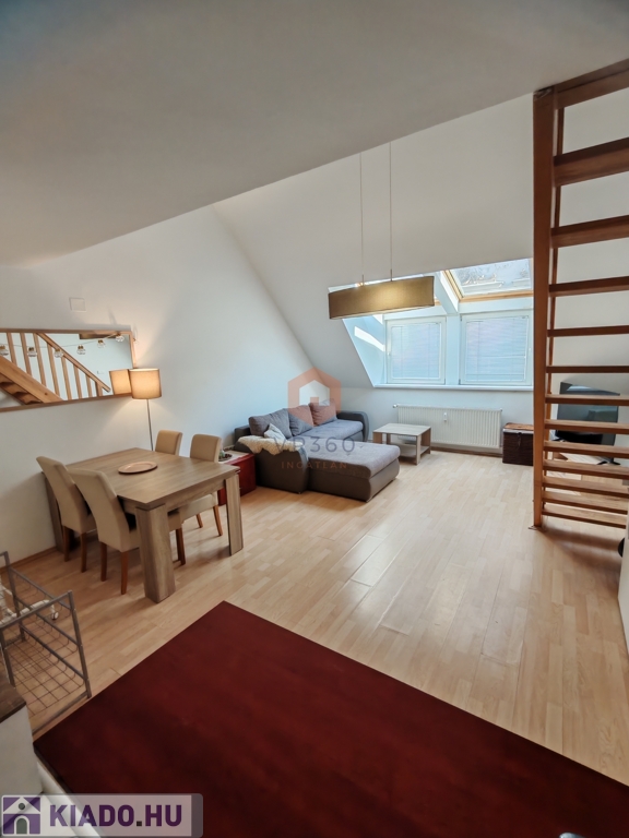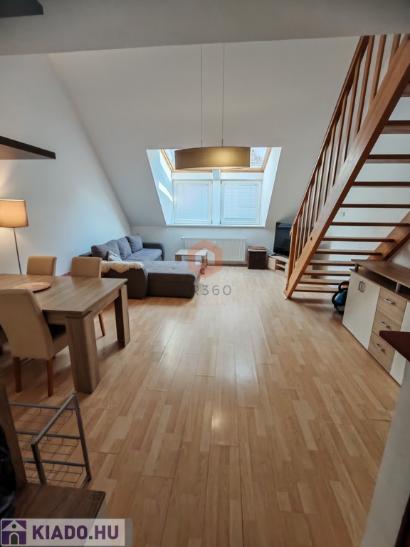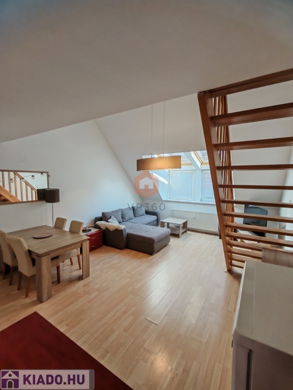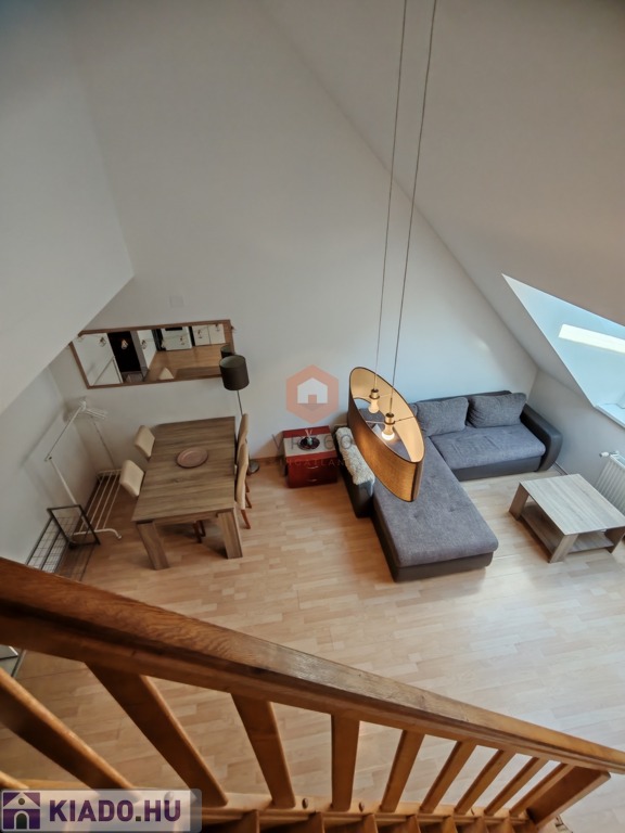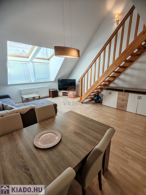 Pécs belvárosának központi részén kiadó egy 70 nm-es, belső kétszintes klímás lakás, egy 2 emeletes tégla társasház 2. emeletén.
