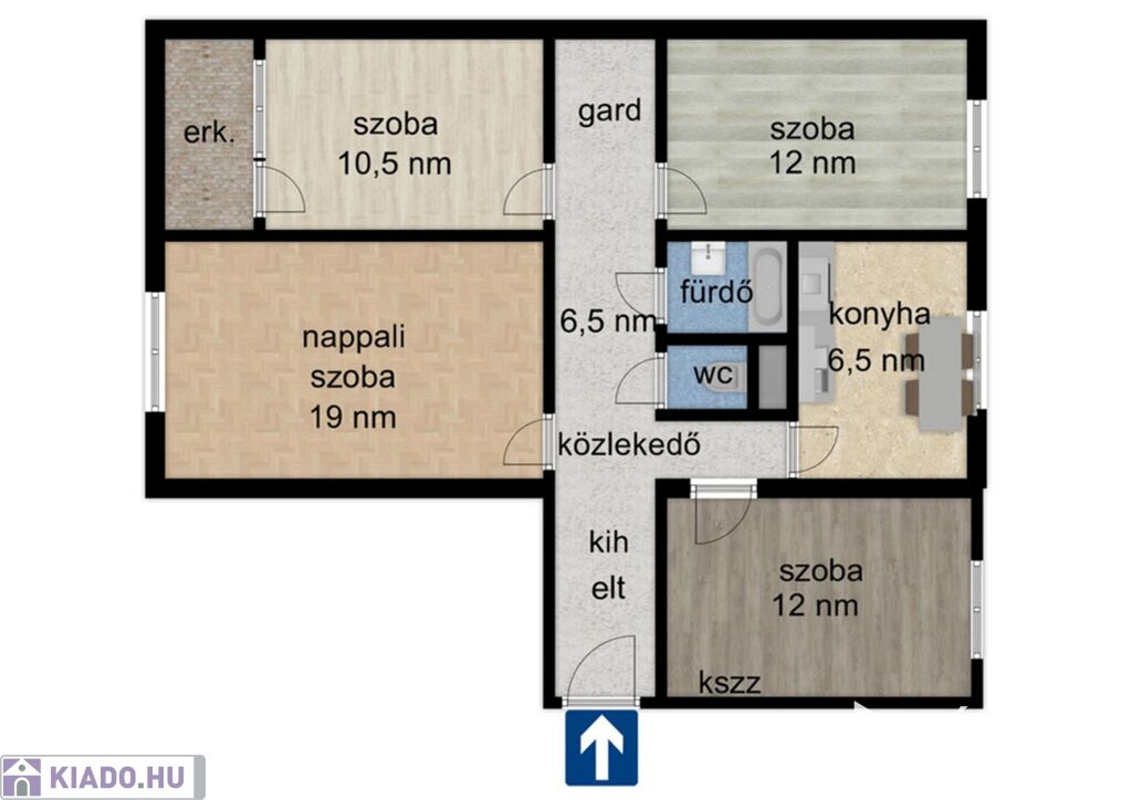 - Nappali, 3.szoba, fürdő, WC, konyha, erkély, kihelyezett előtér.