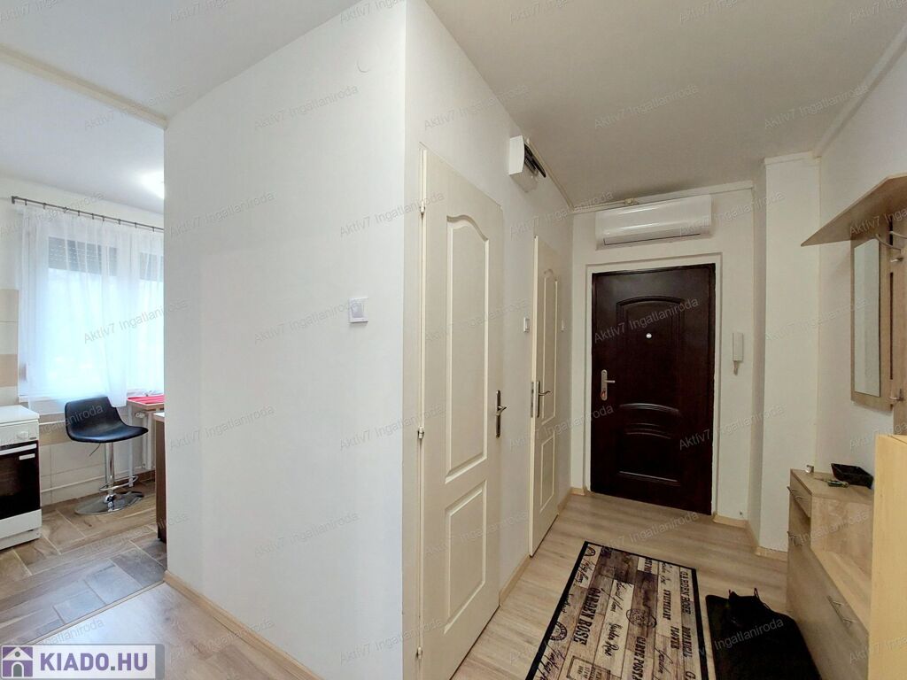 A lakás két külön bejáratú szobával rendelkezik, laminált padlóburkolattal és festett falakkal. Az ingatlan igényesen berendezett, az új bérlőnek csak költöznie kell.