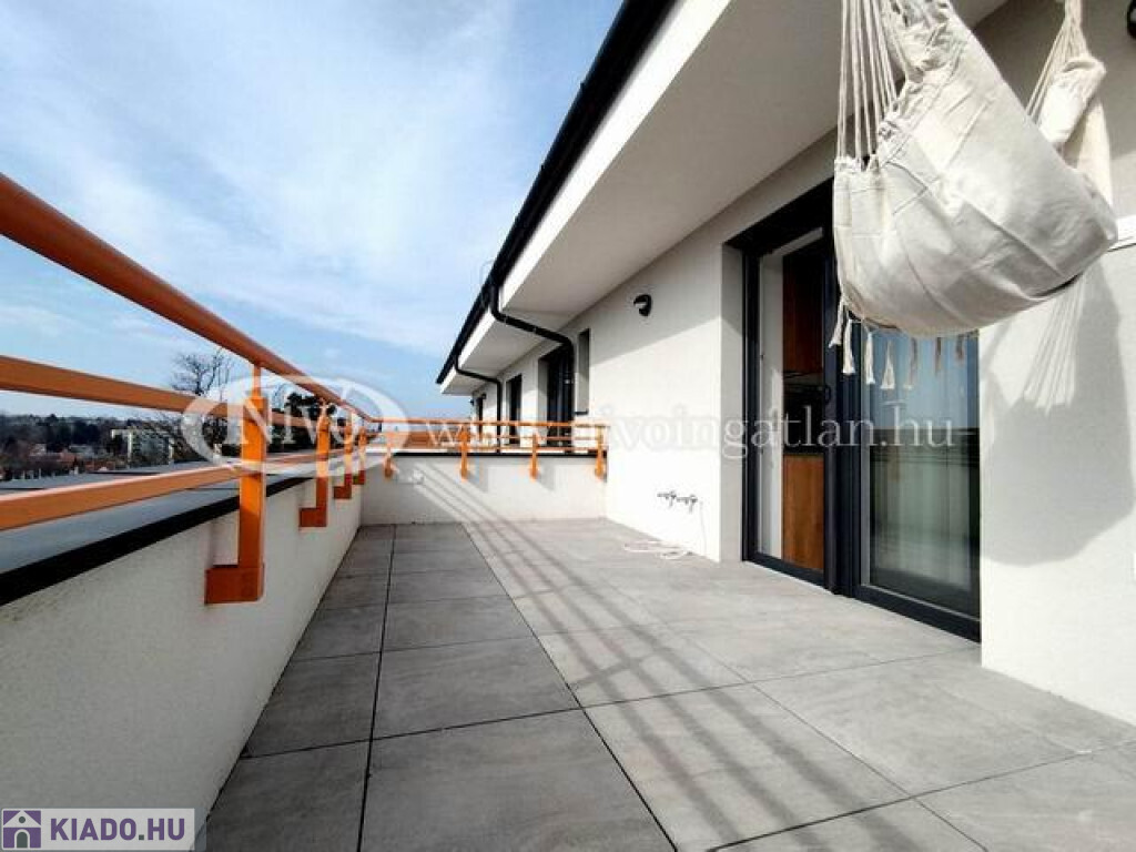 Veszprémben a Füredidombon exklúzív, új építésű, teljesen felszerelt, vadonatúj, világos, D-i fekvésű 25 m2-es terasszal, penthouse lakás kiadó.