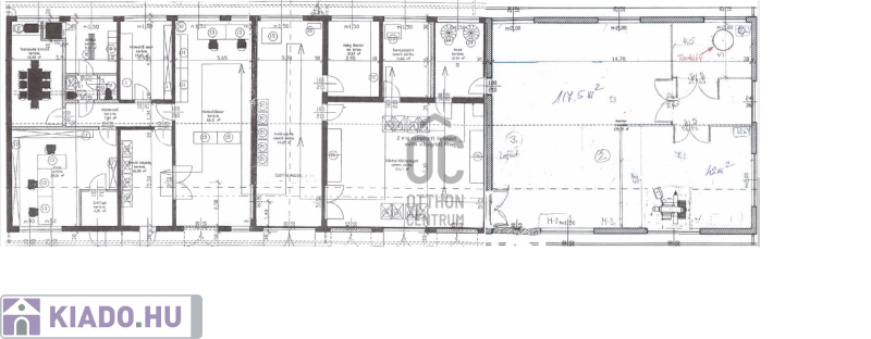 Irodaépület földszint: 316 m2 (11,7 x 27,0 m); + emelet: tetőtér beépítéssel