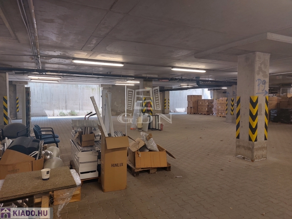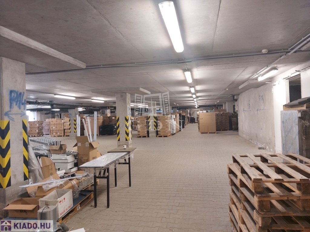 A raktárterületet az épület mélyszintjén található 2,6 m belmagasságú, tömbös tárolásra alkalmas.