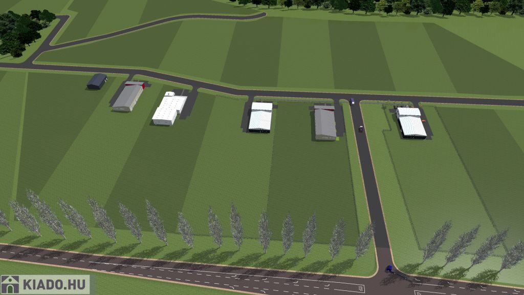 Ikrénynél az M1-es autópálya, 85-ös főúti lehajtója mellett, 5.000 m2-től, rugalmas méretben, 70.000 m2-ig, 12 m magas, ipari csarnokok, irodákkal kiadók.
