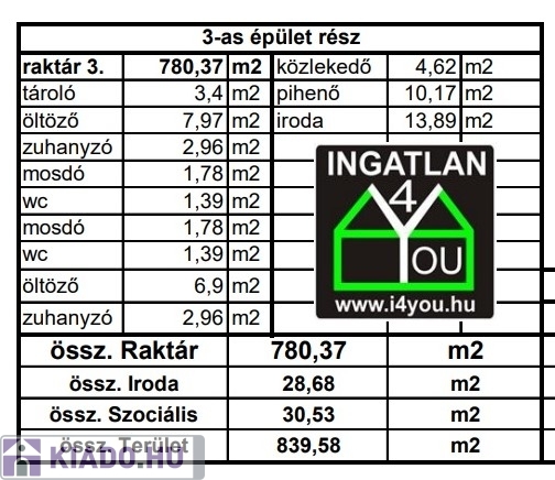 - Raktár csarnok: 780 m2