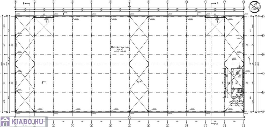- Raktár csarnok: 974 m2